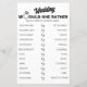 ブライダルシャワー、バチェロレッテ、またはゲームの結婚「彼女はむしろ結婚だろうか」とのお祝いに興奮と笑いを追加!お客様は花嫁の好みを推測する爆風を持つだろう – 彼女はビーチリゾートやグラミング、チョコレートやバニラ、家や踊りを夜明けまで愛しているか。婚約リングのアクセントを備えたシックな白黒のレイアウトで設計されたこのゲームは遊エレガント、新婦パーティー、カップルのシャワー、お祭り結婚に最適な簡単である。ビッグデーの前におもしろいの思い出を作る必需品!カスタマイズ可能 – 今後のイベントのために個人的なスピンを追加!📌最適: ✔️ウェディングレセプション&カクテルアワー✔️ブライダルシャワー&バチェロレットパーティー✔️婚約パーティ&リハーサルディナー✔️ゲストテーブルアクティビティ&アイスブレーカー🎉コレクションを完成!この単語結婚検索を他の一致するゲームと組み合わせ結婚て、まとまりのあるスタイリッシュイベント体験を実現する。