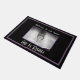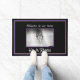 黒い背景と紫と金ゴールドの色で示されたDoormatは、神聖な聖書のページのイメージの周りに縁どは、ハートの形の中心に印刷された聖書の中央の折り目にの形を形成するつばの冠のイメージ。彼はイメージの下に大きな白い文字で上昇している。その上に「家へようこそ」という言葉がある。色:黒、白、紫、金ゴールドアクセント縁ど。こカスタマイズの品買目は