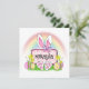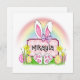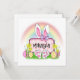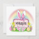 このダーリングデザインは、虹、ギンガムの名前のサイン、バニーの耳と足、ダッフォジルとイースターエッグを備えている。背面の「ハッピーイースター」グリーティング必要に応じて前面と背面をパーソナライズする。