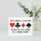 四つのカードスーツと来の質問を備えたギフトの中では、皮肉と示唆の強い態度が生きている頼と後を追:「あなたが必要とするすべての人が良い手である場合にパートナーを必要とする誰か?」 ブリッジにパートナーが必要でないことを望む全てのブリッジプレーヤーのためのギフトと、時にはブリッジのテーブルで、それは勝つために良い手を取る必要があることを理解している!