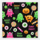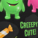 漫画鮮やかのモンスタよくはしゃぐー、ニヤリフレンドリーン、カラフル棒つきキャンデー、キャンディ、眼球の組み合わせを特徴とするシームレスなパターン。このデザインには、暗い背景を背景に設定された「CREEPY CUTE!」「ファンキーFRIGHT!」などのおもしろいハロウィーンのフレーズが含まれている。このパタお洒落ーンは、布のプリントユニーク、パーティーの装飾、ラップ紙、またはデジタル背景を作成するのに最適である。