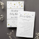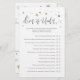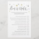 白い背景にグレーと金ゴールドの星が付いたスクリプトモダンフォントを備え、男の赤ちゃん、ベビーガールやサプライズに最適なベビーシャワーゲームカード!このカードを使って性別を明かすパーティー!