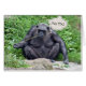 チンパンジーは岩の上に座って草の葦の上に座っ恋しく思ている。