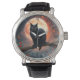 恐ろしいハロウィーンの黒猫の月明かり 腕時計