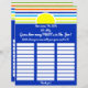 Baby Shower Game Guess GuerのサインアップシートにM&Msの数を推測する。夏の赤ちゃん来のシャワーのためのマッチングデザインとおもしろいとカラフルデザインの夏の赤ちゃんシャワー。カスタマイズ可能なすべてのおもしろい領域の明るさと文字フォント。デザインはサマーストライプベビーシャワー招待状コレクションの一部で、、おむつラッフルとブックライブラリのエンクロージャ、パーティー用品、装飾、ギフトなどを含む。