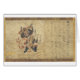 12世紀で日本のな色刷。 描写される場面はShōkiについて仏教の物語から関連しています来ます。 Shokiは伝説に従って邪悪な鬼からの独特の味皇帝Xuanzong (685-762)を保護した中国からの鬼殺害の神です。 彼は大きい目および厚いひげと描写され、黒いローブおよび高く黒いブーツを身に着けています。 ここでは、小さい鬼を締めつけている彼は示されています。 彼はまた火にそれのようにほとんどある見える大きく赤い帽子を身に着けています。 芸術家は左の有名な物語について書かれて見えるものがの漢字および平仮名(日本のな執筆)のようにまたは署名しました。