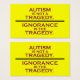 自閉症は悲劇ではない。無知が悲劇だ。autistart.comのシンプル文字専用デザイン。活動家カード