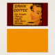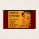 レトロな赤い口紅を持つ笑顔の女性と爪、 ネイルは朝のコーヒーのカップを飲む。「コー読ヒーを飲む – もっとエネルギーを使って愚かなことをもっと早く行う」というタイトル。