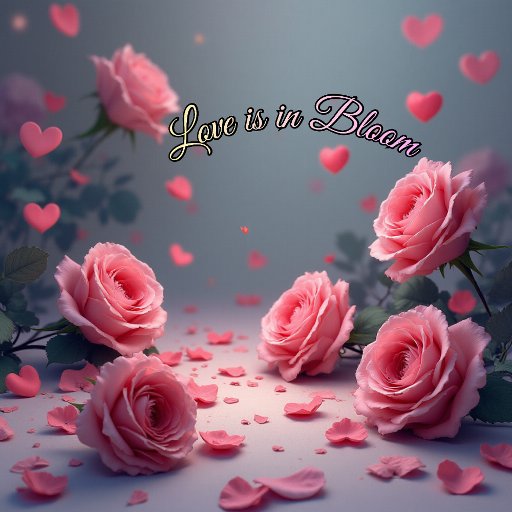 夢見るようなピンクのバラ、繊細に散らばる花弁、そして浮かぶハートが特徴のこの美しいクッションで、ロマンチックな聖域を作り出してください。エレガントなスクリプトの「Love is in Bloom」は、この洗練されたフラワーデザインにラグジュアリーなタッチを加えています。