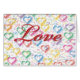 背景にネオンハートの束、赤い草書体のフォントに愛という言葉が書付いたかわいいグリーティングカード。愛カスタマイズ者に送るグリーティングカード