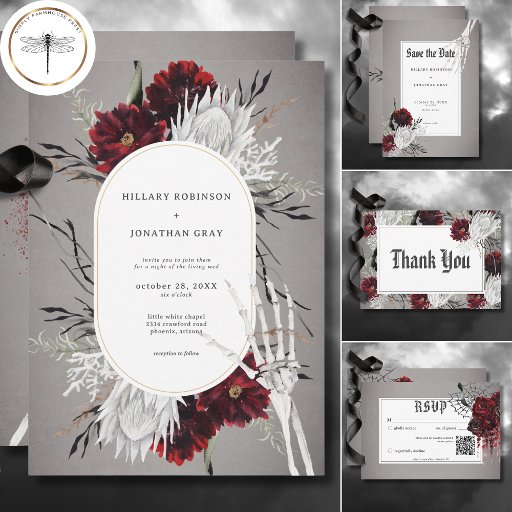 私たちの不気味な結婚式招待状で永遠の愛の魔法を明らかにする!この血のように赤く幽霊のように白い水色の花のフレームの別世界の魅力を受け入れ、時代を超越したロマンスの物語を囁く骨格手の骨の把握に縮まる。幽霊のように触れたエーテルの背景はぼやけ、普通を超えるお祝いのステージを設定する。招待を広げる感じと、2つの骨の手が血のように赤く飛び散ったハートを握り締める興奮の冷え込み。それは愛の象徴であり、その先の領域をも汚す。神秘的でロマンチックな結婚で、魅力的で美しい組合に誘う。結婚式の日を他の誰にも負けないエーテル体験にしよう!Simply Farmhouse Pressによって作成された、それは愛とボーンズ赤い不気味フローラのスイートの結婚一部である。