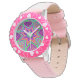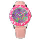 鮮やかなピンクと紫のハート飾は、このおもしろいスポーツウォッチのティール(緑がかった色)の背景。「愛に満ちたハート」の一部。