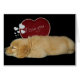 眠いゴールデンレトリバーと赤いハート。