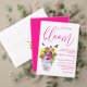 愛は開花!フローラ鮮やかの結婚コレクションは、蝶に囲まれた大理石の花瓶に花束を持ち、明るい赤紫色スクリプトタイポグラフィを伴う。