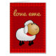 本当に可愛いカード!この魅力的小さな羊は彼に愛を広げ与える。このカードには、上に「愛する」という言葉が書かれたフワフワの漫画の羊が登場する。背景は赤いハート。AとおもしろいValentine's Dayカードを作るお洒落か、私たちが愛する1つ与えの特別な何かをしたい時にいつでも
