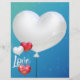 ハッピーバレンタインデー「愛は空気の中にある」風船と赤と白イラストレーションは美しモダンい。青い空の背景に書モダン、ハート形状のリアルな3Dバルーンで囲まれたタイポグラフィスクリプト文字の文字。