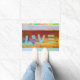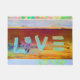 愛ヒッピーのボヘミアのbohoの玄関マット。 若草色、ピンクの、黄色い錆、銅色。 木で絵を描かれる単語「愛」。 この多彩で、シックで、粋で、クールで、モダンな家の装飾項目とのスタイルで出かけて下さい。