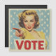 1950年代のピンアップアートを彷彿とさせるブロンドの髪と赤い口紅を持つ華やかな女性をフィーチャーしたレトロなスタイルのポスターはっきりしたで、アイコニックな「アンクル・サム・ウォーズ・ユー」の募集ポスターに似たポーズで観客を直接指さしている。彼女の背後には星空の青い背景があり、「VOTE」という言葉は下に大きな赤い文字はっきりしたで目立って表示される。全体のデザインは愛国的な切迫感を呼び起こし、市民の参加を促す。