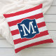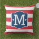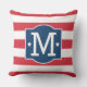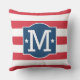 愛国的な枕デザインは、ファミリーのモノグラムのイニシャルカスタム、スターのアクセントと水平のアクセントと装飾的なフレームを備えストライプている。赤、白、ネイビーの青の色。