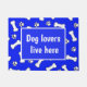 犬のオーナーは、明るい青の背景に漫画の犬の骨と前足のプリントを描いたかわいいdoormatを崇拝し、愛犬家の言葉はここに住んでいる。