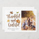 感謝と感謝の感謝祭のカードと秋/秋の葉をフィーチャーした写真。