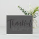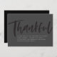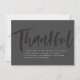 この白黒の感謝祭のディナーの招待はっきりしたは、あなたのパーティー詳細のためのモダンタイポグラフィと一緒にブラシのスクリプト"感謝"を特徴とする。この招待は、Lea DelaverisデザインThankful Thanksgivingコレクションとコーディネートする。裏の方が斑点のある黒だ。