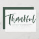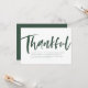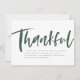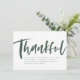 この感謝祭のディナーの招待はっきりしたは、あなたのパーティー詳細のためのタイポグラフィと一緒にハンターグリーンの豊かな秋の陰でブラシのスクリプモダント「感謝深い」を特徴としている。この招待は、Lea DelaverisデザインThankful Thanksgivingコレクションとコーディネートする。