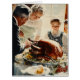 この画像は、クラシック感謝祭のシーンをヴィンテージイラストを連想させる。それは家族がディナーのまわりにテーブルを集め、古い男として喜んで見て大きな黄金色のロースト七面鳥を運ぶ。窓越しに注ぐ暖かい光は、家族の顔を照らし、その幸せと期待を強調する。テーブルにはブドウや七面鳥を取り巻く飾り飾りなど、豊かな饗宴がエレガントに並んでいる。全体的な雰囲気は、懐かしさ、暖かさ、お祝いを連想させる。