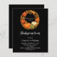 黒い背景。オレンジ飾の葉とカボチャを持つ秋をテーマにしたリース。..文字付き:感謝祭ディナー書に手文字のモダンスタイルスクリプト。カスタマイズして詳細を追加1枚= 1枚の招待状を印刷したエッジからエッジ