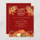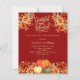 テラコッタ色の背景。パンプキ飾ンとオレンジと黄色の花を持つ。カスタマイズしてパーティー詳細を追加する。文字脚本:感謝賛美と。1シート= 1インビション印刷エッジからエッジまで。