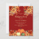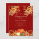 テラコッタ、茶色の背景。パンプキ飾ンとオレンジと黄色の花を持つ。カスタマイズしてパーティー詳細を追加する。1枚= 1枚の招待状を印刷したエッジからエッジ
