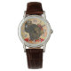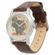 赤と金ゴールドの紅葉と黄色とオレンジの上の足とハートのトルコのヴィンテージのイメージと女性のクラシック茶色の革のストラップウォッチグランジ。オプションのシルバークロック顔。一致するアクリルフォトスカルプチャーピン、ラウンドチャーム、大型の正方形プレミアムメタルキーチェーン、正方形の両面アクリルフォトスカルプチャーキーチェーンおよびアクリル樹脂キーチェーンを参照。HOLIDAYSセクションのACCESSORIESカテゴリの下にある感謝祭の時計コレクション全体を参照。