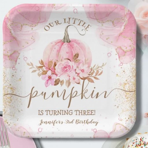 小祝さなカボチャのスタイルでの三つ目の誕生日 | ピンクの金ゴールドガールの第3の誕生日招待状"と、この特別なマイルストーンの喜びと甘さをキャプチャする。今すぐ買い物して、このお祝いを特別なものにしよう!」