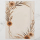 ベージュの背景にフレームを囲むドライフラワーや草を特徴とするレターヘッド。素敵な、シンプル、ミニマルな、ボホエステティック。背面は平明で、前面と同じライトベージュ色。