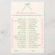 このコーラルピンクと緑のブライダルシャワー「彼女はむしろ」ゲームのシートは、手で描かれたお洒落緑の弓と手書きのカジュアルフォントを備えている。