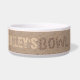茶色のパーソナライズされた色合いのポープリントレタリングと素朴な外観のためのテクスチャ効果の背景を持つ犬のボウル。