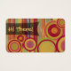この名刺は背部のブランクを計画的に残っていました。 それは赤、金、緑、青およびオレンジの洗練されたパレットを…濃いピンクのあるポップ特色にします。 しかしその洗練は不均等な幅のお洒落で、予測できない織り目加工の、入り込まれた円そしてストライブ柄へ完全なバランスです。 部分的不透明で黒いバッジは単語"こんにちはそこに!"小さい旗のように左からかいま見ます 均等にフレンドリーなフォントで描写されました。 多彩なデザインはこれらのカードの最終的な一見の制御のビットを有することを望んだら動かされるか、回るか、またはサイズ調整をすることができます。 同様に望んだら、あなたのフォントおよびテキストカラーを変えて下さい。 実際の名刺としてこのデザインを使用するために望んだら幸せ書くためにそう消すためにそれを残してよりもむしろ///友人のための背部のフレンドリーなノートおよび家族(、また他人!)します。 ちょうどそれおよびvoilaを消すために残すかわりに背部のあなたの詳細を加えて下さい: あなたのための幸せで小さい名刺!