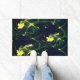 抽象芸術の金属の葉は派手な痕跡を持ち、暗い上に ドアマット