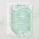 このコーディネートのセットは結婚、抽象芸術アガートのパターン、クリスタルでテクスチャされたフェイク金ゴールドフォイルの輝くハイライトを備えフェイク、華やかさと高いインパクトの両方を得る。ミントグリーンからティール(緑がかった色)ブルーまでの柔らかいパステルパレットと同様に、印象的な色の組み合わせは、このコーディネートされたコレクションのピースの背景を作成する。このリハエレガントーサルディナーの招待状は、あなたのテキストを保持するためにミントグリーンに六角形の半透明のラベルと上記のすべての機能を備えている。テンプレートは、簡単にイベント詳細を追加するために提供される。このページのコレクションリンクを表示して、この美しいデザインで一致するすべてのアイテムを表示するか、ID827を検索してこのデザインの追加の色の選択肢を表示する。