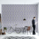 抽象芸術アートブルー自転車グレー中柄 壁紙
