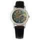 抽象芸術エレガントティール(緑がかった色)ブルー金ゴールド孔雀の羽根 | 腕時計