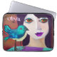 抽象芸術ガール&バードパープルとティール(緑がかった色) パーソナライズされた ラップトップスリーブ