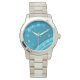 抽象芸術ティール(緑がかった色)ブルースワールホワイト数字 腕時計