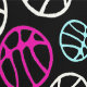 抽象芸術バスケットボールパターンキッズ壁紙。黒い背景に色を付けた手描き抽象芸術違うバスケットボールボール。子供素晴らしの部屋か子供部屋の部屋に