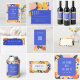 レトロアート抽象芸術ボ結婚タニカルQRコードRSVPカード(青、オレンジ、ピンク、黄)