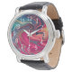 抽象芸術モダンブルーと赤の液体の大理石アートワーク 腕時計
