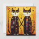 抽象芸術仲間:2匹の猫の物語。この作品は、輝く抱擁の中で2つの猫の仲間を特徴としている。幾何学的なアクセントと黄金の色合いは、時代を超越した美しいと一体感を呼び起こす。複雑な幾何学的なデザインで飾られ、調和を象徴する。彼らの鋭い目と連動した手は、アートが感情を満たす世界に観客を招待状させる。