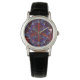 このデザイナーウォッチの顔は、赤と青が支配する抽象芸術の背景に囲まれた平和サインである。ちょっとファンキー上品な感じ。待って?可能か?うん。男性、子供のユニセックススタイルでも利用可能。