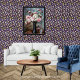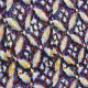 デジタル化された編集は、このデザインを結晶化されたグラフィックアートに変換し、紫、青、黄、白、茶色、黒の色で星のパターンが表示される。
