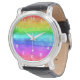 抽象芸術水絵を描色ストライプレインボー 腕時計